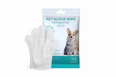 Pet glove wipes for dogs and cats, unscented, with images of a dog and a cat on the packaging